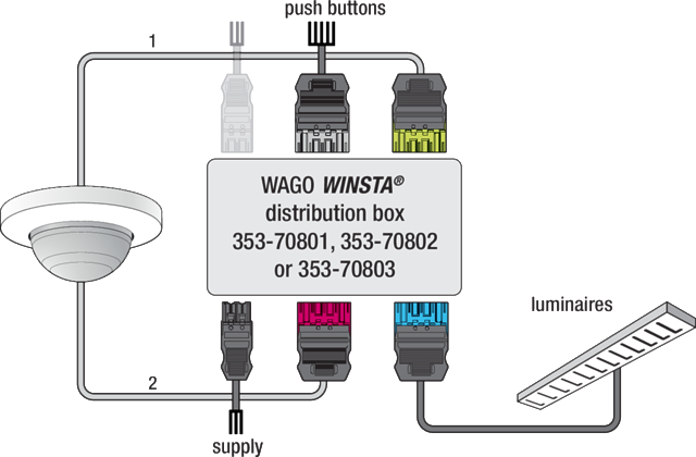 EB-Präsenzmelder Niko P48LR 360° Master DALI 32…37m IP20 mit 2×Kabel weiss
