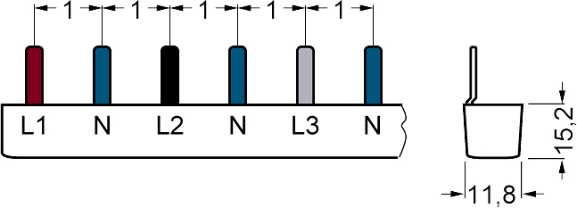 Herst.-Nr.:5ST3623Herst.-Typ:Stiftsammelschiene, 10mm2 Anschluss: 2x3X (1-phasi