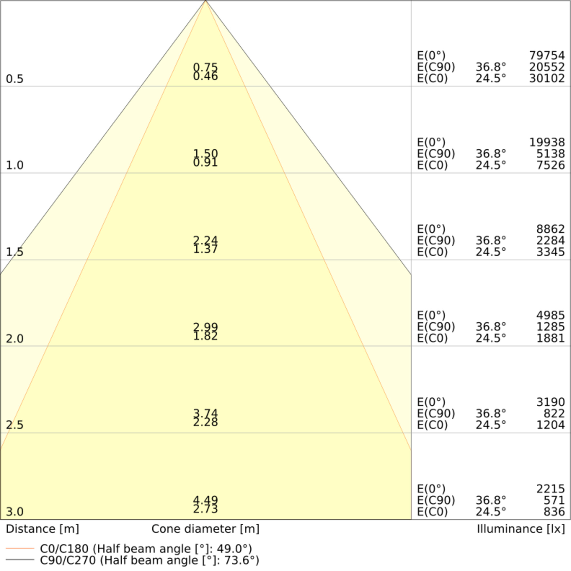 - Bemessungslebensdauer L70/B50 bei 25 °C
