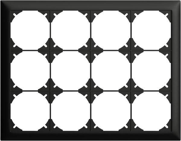 UP-Kopfzeile Feller EDIZIOdue, mit SNAPFIX®-Befestigungssystem, Anzahl der Einheiten vertikal 3, Anzahl der Einheiten horizontal 4, Montagerichtung horizontal, Breite 268 mm, Höhe 208 mm, Tiefe 7.3 mm, halogenfrei, Werkstoffgüte Thermoplast, Farbe schwarz, Ausführung der Oberfläche matt, RAL-Nummer (ähnlich) 9005, für frei wählbare Kombinationen, inkl. Grundmaterial, für G.A.-Apparate