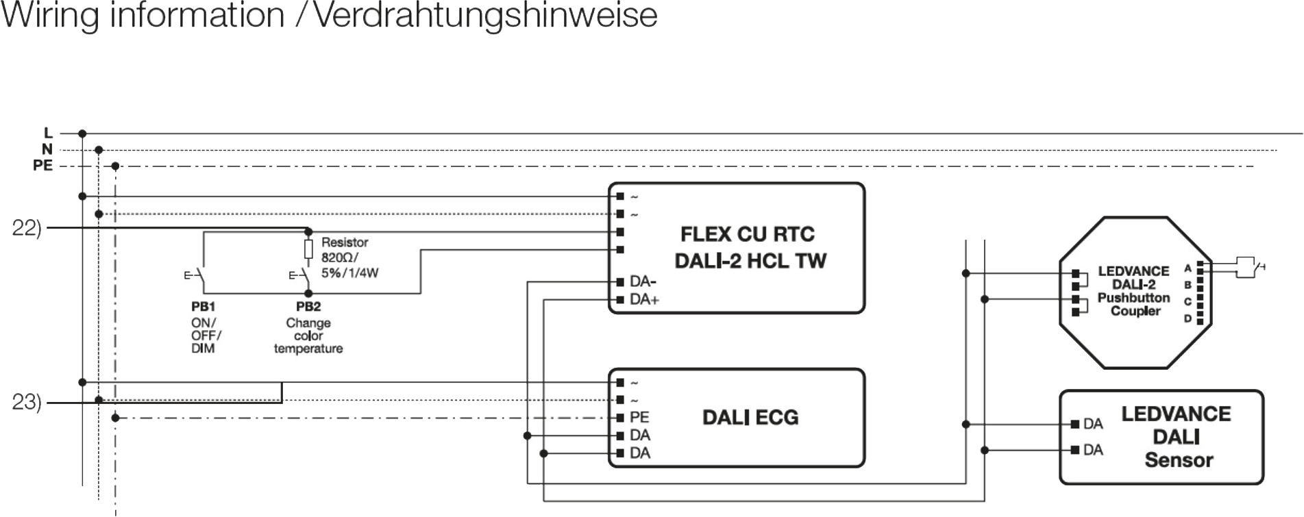 Appareil de commande LEDVANCE HCL TW, encastrement, indice de protection IP20, classe de protection II, tension d'entrée 220…240 V, mode de commande DALI, boîtier boîtier en matière synthétique, longueur 119 mm, largeur 30 mm, hauteur 21 mm