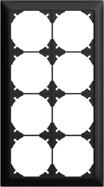 En-tête ENC Feller EDIZIOdue, avec système de fixation SNAPFIX®, nombre d'unités verticales 4, nombre d'unités horizontales 2, sens de montage vertical, largeur 148 mm, hauteur 268 mm, profondeur 7.3 mm, sans halogène, qualité du matériau matière thermoplastique, couleur noir, finition de la surface mat, numéro RAL (similaire) 9005, pour combinaisons au choix, matériaux de base inclus, pour appareils G.A.