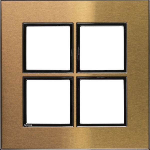 En-tête ENC Legrand Arteor, nombre d'unités verticales 2, nombre d'unités horizontales 2, sens de montage horizontal et vertical, largeur 157 mm, hauteur 157 mm, qualité du matériau acier affiné, couleur Gold Brass, pour combinaison, comprend le cadre de recouvrement et la plaque de fixation, entraxe 60 mm, pour les inserts Mosaic et Arteor (2 modules chacun), les inserts d'appareils sont listés séparément dans l'ordre de gauche à droite ou de haut en bas