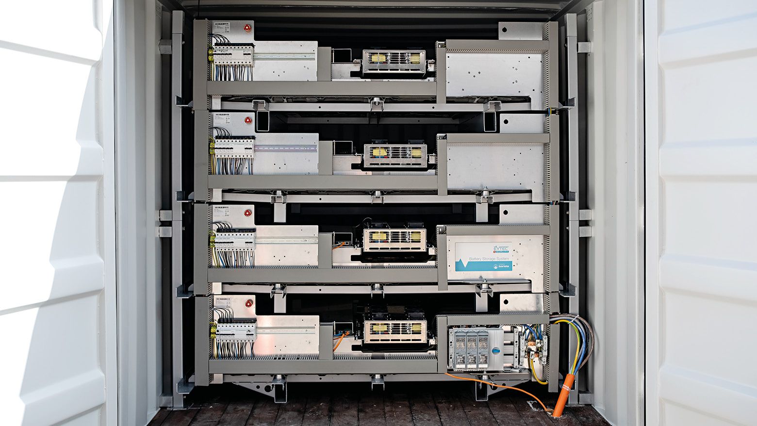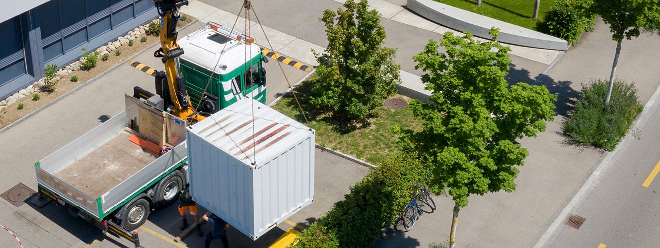 Nos visiteurs le remarquent immédiatement: le conteneur se trouve juste devant l’entrée de notre bâtiment. Il s’agit d’un système de stockage d’énergie servant à utiliser encore mieux l’électricité produite par l’installation solaire sur le toit du bâtiment. Et ceci de manière particulièrement écologique. En effet, en adoptant la stratégie énergétique 2050, la population suisse a décidé de miser sur des ressources durables. Cela signifie d’abord que dans le cadre du premier ensemble de mesures, il faut augmenter l’efficacité énergétique et promouvoir le développement des énergies renouvelables.