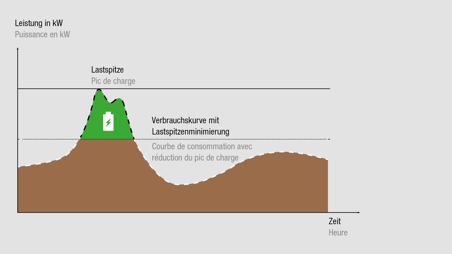 Le système de stockage par batteries permet d’augmenter la consommation propre et de réduire le pic de puissance.